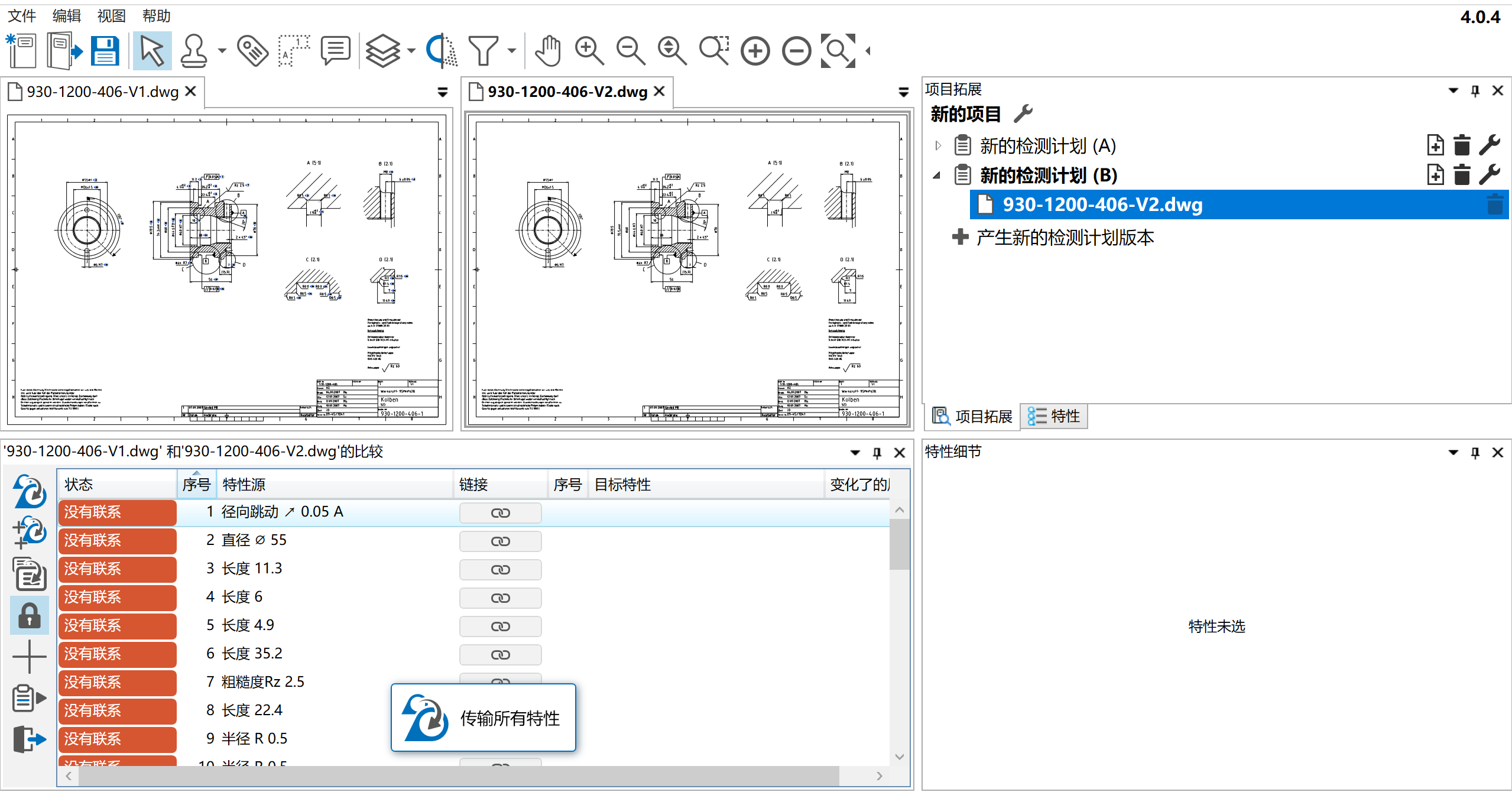 • 軟件還有一個特別實用的功能,就是圖紙版本比較功能,能夠快速地比對圖紙的新舊版本,找出改動,并且一鍵更新,迅速完成版本的更替,節(jié)省二次標注的時間。